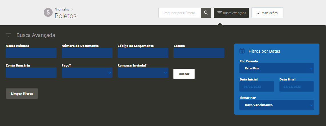 Em seguida, você poderá localizar o boleto através da Busca Avançada ou então, na pesquisa rápida pelo seu número.
