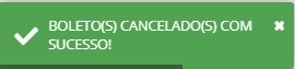 Feito isso, o sistema exibirá a mensagem de Boletos Cancelados com Sucesso, no canto inferior da tela.